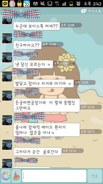 학교에서 폰냇다가 받아보니 이런 카톡이 와있는것도
