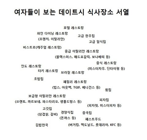 한국여성들이 정해놓은 음식점 서열입니다 참고하세요