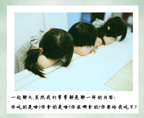 <똑같은 포즈로 소곤소곤 놀이도 해요. “뭐 먹었어? 그게 뭔데? 어디서 났어? 나도 좀 줄래?” 매일 반복하는 같은 말이지만요> 라는 뜻..