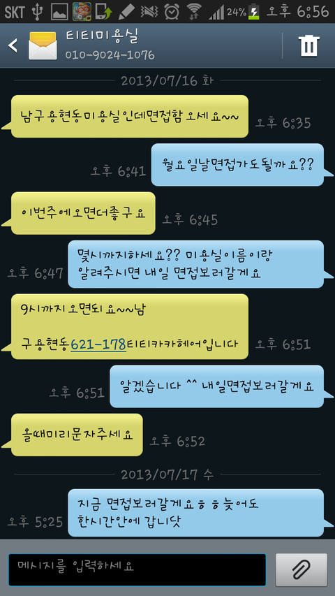 전 연락 기다리면서 다른 미용실에서온 문자들 연락들 다 거절하고 기다렸는데