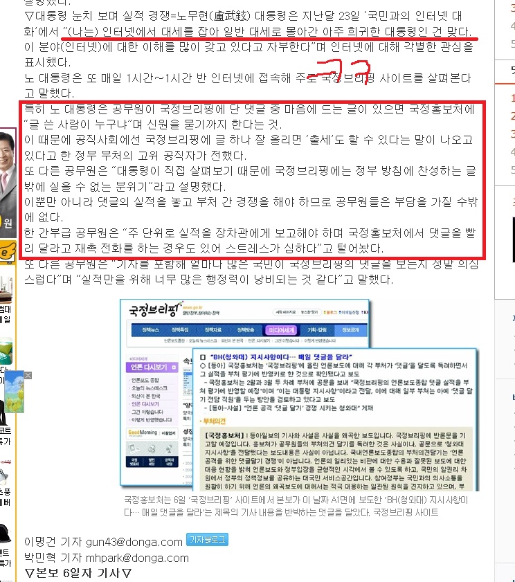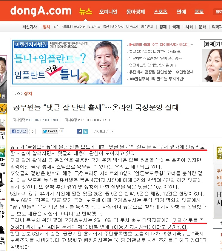 공무원이 쓴 댓글은 노무현 대통령이 직접 감찰하기도...