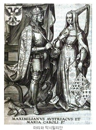 15세기 당시 유럽에서는 가장 미녀공주이자 일등 신붓감으로 한 여성을 지목하고 있었다. 그녀의 이름은 마리 부르고뉴공이던 용담공(사자의 담력도 아니고 용의 담력이란다) 샤를의 무남독녀 외동딸이었다. 그녀가 다섯살이 되던 해 독일 합스부르크 왕가에서는 한 남아가 백성들의 축복속에 태어났다. 아버지는 그의 이름을 막시밀리안이라 지었다.