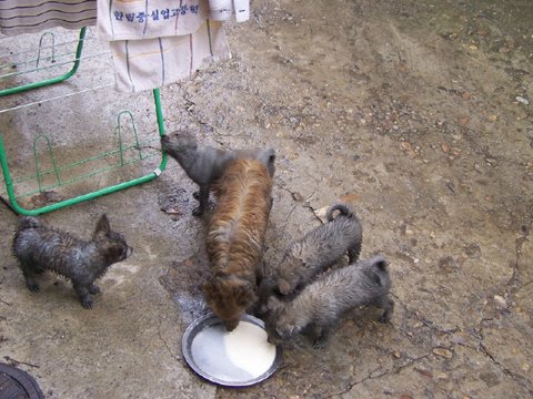 어미는 새끼들이 먼저 먹은 다음 마지막에 남은 우유만 먹었습니다