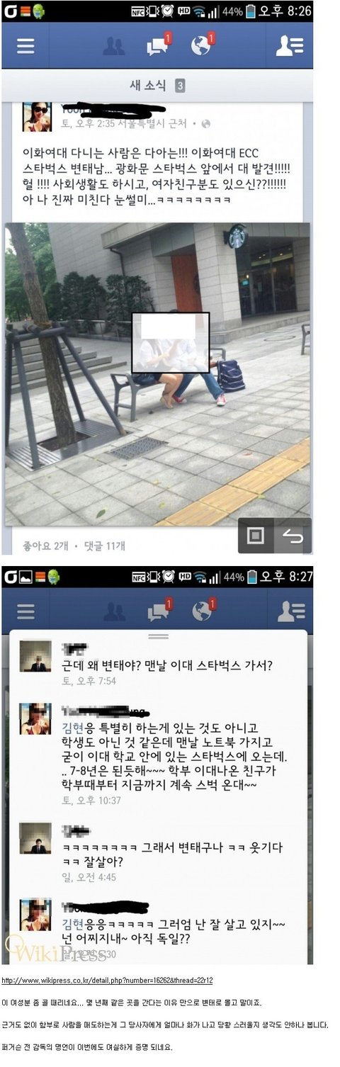 이대 ECC 스타벅스 자주간다고 변태로 사진까지 찍어서 페북에 올리다니 뭐 이런 무개념이.