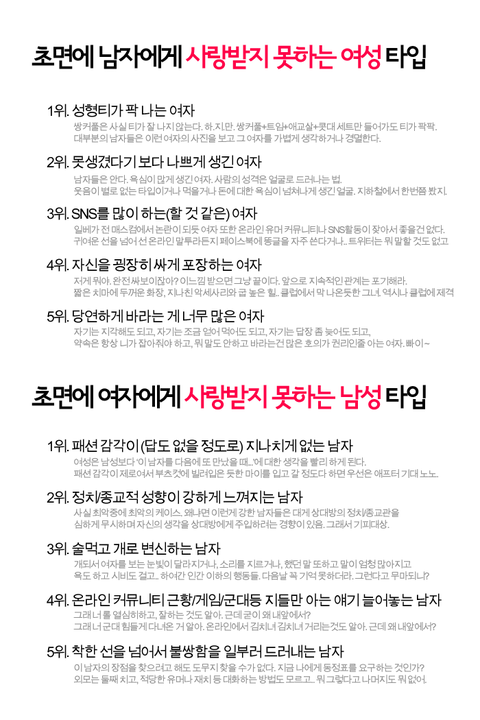 이성에게 비호감 받는 남/여 타입..