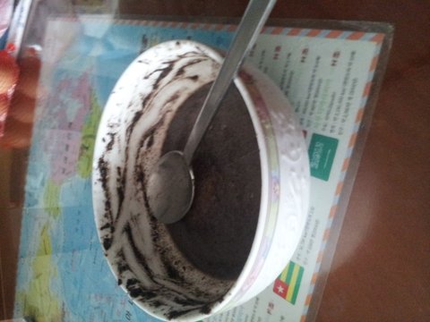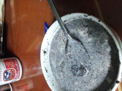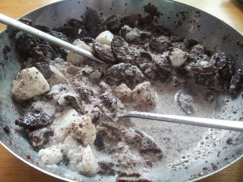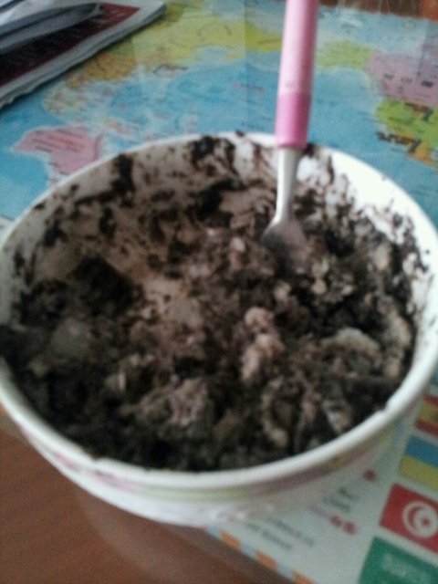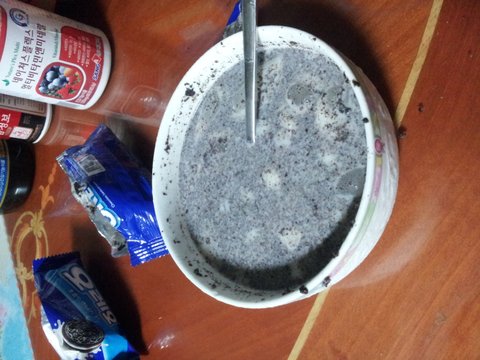 우유가 부실하게 얼었지만 난 미친듯이 포크로긁어서 모양새를 만들고 오레오부신걸 넣었음.