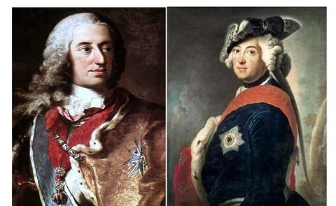 아밀리아의 남편인 바이에른 선제후 카를(왼쪽)과 그의 든든한 지원군(?) 프로이센의 프리드리히