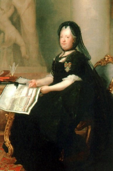 마리아 테레지아의 젊은시절 모습(그녀는 아들을 낳을 수 있다는 아버지의 집착에 의해 왕위계승 수업을 일찍 받지 못하고 당시 여성들이 배우는 자수넣기 등 여성교양만을 배웠다. 그리고 시집가기 직전에야 왕실업무에 참석할 수 있었지만 정치적 발언은 제한받았다.)