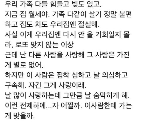 절 좋아하지만 경제력좀 있는 남자가 바로 대쉬하면 절 버릴것 같아서 불안하네요