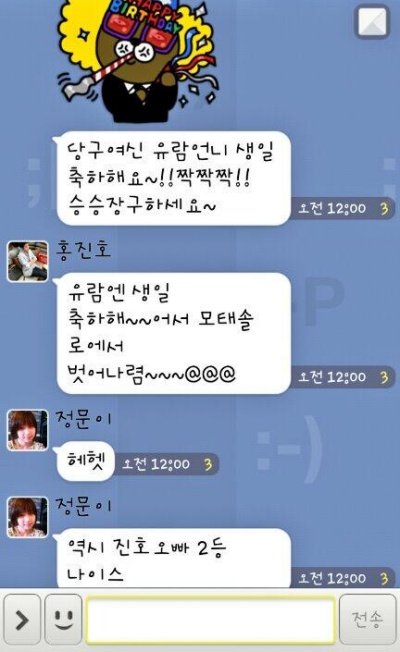 암튼 더지니어스 함께 나갔던 출연자 단체챗방에서 생축 메시지가 이어지던 중
