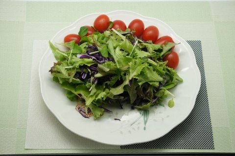 3.각종 야채들과 (저는 어린상추를) 적 배추를 채썰고 토마토를 씻어