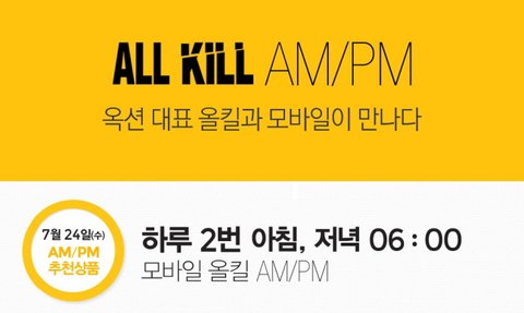 7월 들어 옥션에서 시작한 모바일 올킬 AM/PM 이벤트.
