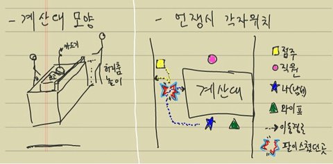 점주 : "지난번에도 우리 가게 오셨던 손님이죠? 그때도 우산이랑 양산 이것저것 다 펴 봐서 팔지도 못하게 만들어 가지고 결국 본사에 다 올려 보냈어요. 그까짓거 하나 팔아봤자 저희는 손해가 더 컸다고요! "