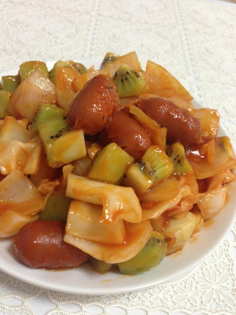 냉장고에 돌아다니는 채소랑 상하기 직전 키위 넣고 볶았어요~