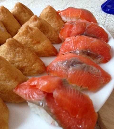 유부초밥하면서 냉동실에 몇개 남아있던 연어녹여서 초밥해먹었는데