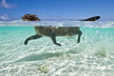 수영하는 고양이의 모습을 심심찮게 볼 수가 있어요.
