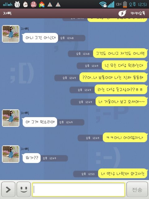 걔가 지난주 목요일에 카톡을 걸었어 사진 요기