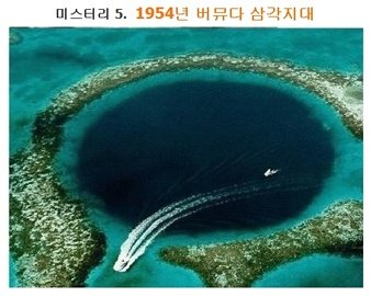 마지막사진은 마류삼각지대사진이아니구요, 블루홀이라는사진이에요 블루홀에 많은 스쿠버다이빙들이 들어가서 사망한경우도많구요 블루홀은 매우깊은대다 어두워서 심해물고기들과 잘 볼수없는 생명체들이 많이살아요