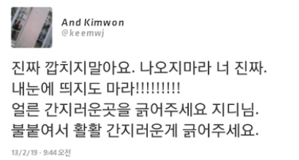 그리고 하필 이 시점에 원중오빠가 트윗을 하나 썼습니다.