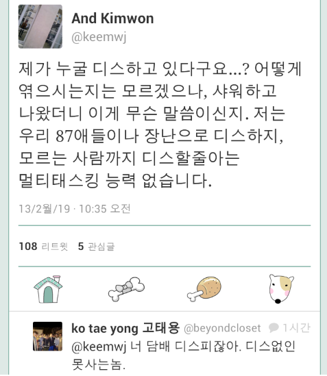 이걸 보고 대마초라고 용준형이 디스한거라고 할 때 비스트 팬들이 괜히 찔려하지 말라고 조카 싸우는데 비스트 팬 니들 괜히 원중오빠 트윗 보고 얼마나 찔렸으면 직멘을 저따위로 보내니? ㅅㅂ