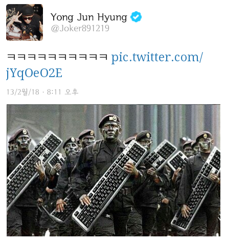 진짜 빡치는뎈ㅋㅋㅋㅋㅋㅋㅋㅋㅋㅋㅋ 더 웃긴건 용준형씨가 지드래곤씨랑 똑같다는 그걸 보고는 원중 오빠가 글을 쓰기 전에 트윗을 올리셨더라구요?
