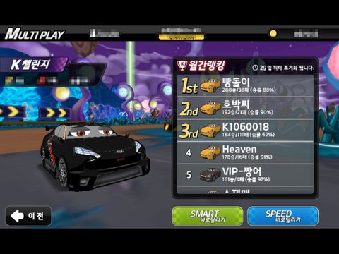 마지막 결승선 보일때까지 지고 있다가, 부스터 모인거 써서 겨우 2등ㅋㅋㅋㅋㅋ