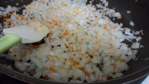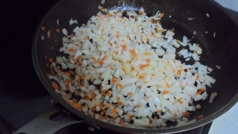 2. 감자가 쪄지는 동안 감자와 함께 섞일 야채를 버퉈에 볶아줍니당.