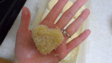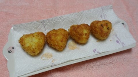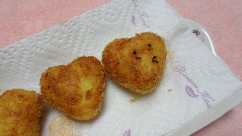 튀기다가 튀김건더기?ㅎㅎㅎ뭐이런게 묻어서 하트모양고로케에 얼굴이 똭!!!!!!!!!!!