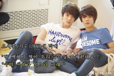 그런세훈씨를 아니꼽게 쳐다보는 백현씨, 둘사이 앙숙인가 보다.