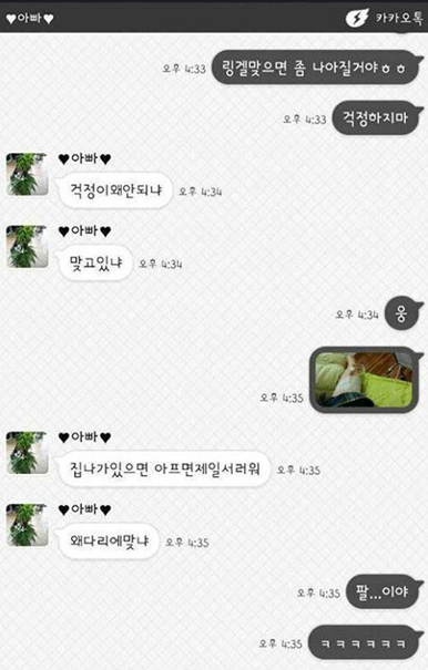 링겔 왜 다리에 맞냐는 아빠문자가 젤슬퍼...