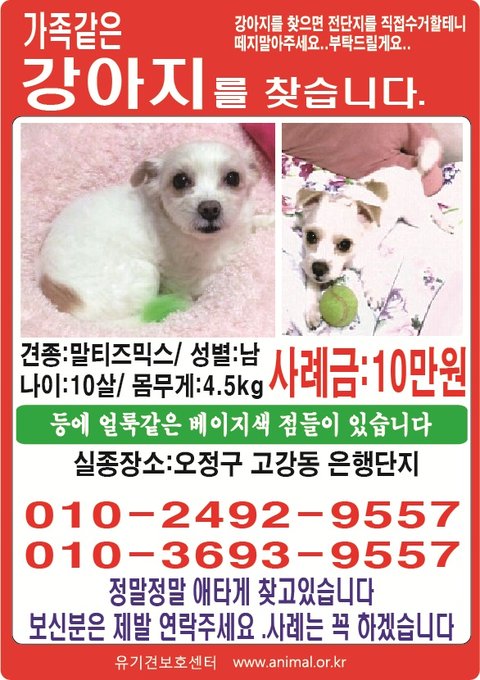 말티즈 믹스 군돌이를 찾습니다.