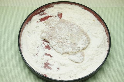 고기를 먼저 밀가루를 묻혀 줍니다.