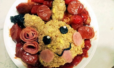 계란노른자랑 밥이랑 섞어서 모양만들고 초딩 동생입맛에 맞춘 소세지 파티임