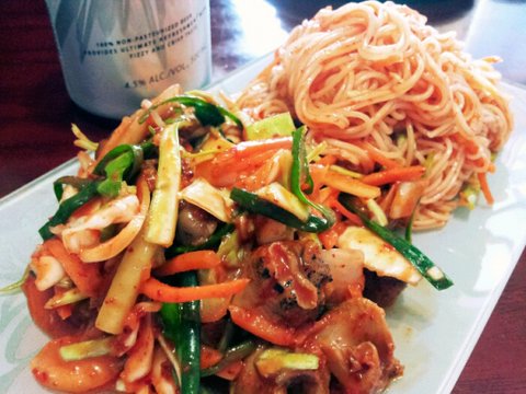 소면이랑 비벼서 돌돌말아 골뱅이랑 먹으면 캬 술이 걍 술술 들어감