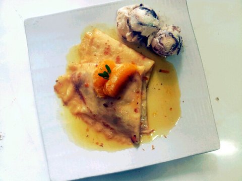 크레페 만들어서 오렌지소스 만들어서 졸이면 완성