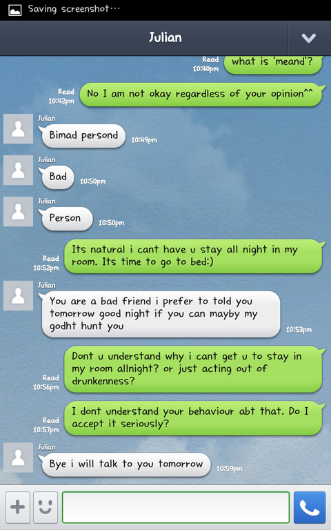 저와 친한 일본친구(여자)가 그 애에게 경고를 했어요. 이 친구와 런던을 가기로 했는데 이 콜롬남이랑 다른 친구들까지 껴서 같이 가려고 티켓까지 예매한 상태에서 이런 일이 일어나니까.. 도저히 전 얘가 이해가 안가서;; 그냥 안갈까 고민 중 이라고, 여행 다시 생각중이라고 얘길 했더니..(이 친구도 그 현장에 있었음)