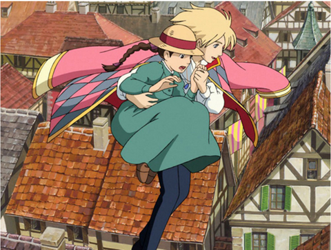하울의 움직이는성에서 하울이 소피를 들고 하늘을 걷다가 베란다(?)에 내려주고