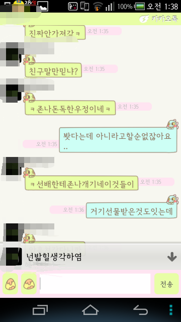 이글을봣나봐요 그라서단톡걸고 막욕하더라구요 그렇게한참을욕먹다가 그중에서 착한언니가 뭔일이냐구다시천천히말해보라고
