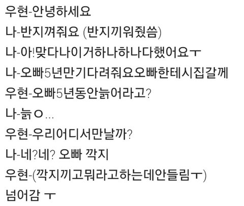 어떤 누나피릿분잌ㅋㅋㅋㅋ 엘옵 머리 쓰담쓰담해줄라고 손을 뙇 올렸는데 엘옵이 그손을 갑자기 박력있게 뙇 잡더니 "오늘머리 스타일링해서 안되요ㅎ.."하고 깍지 껴준ㅋㅋㅋㅋㅋㅋㅋ
