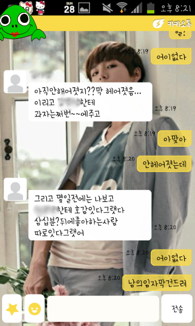 하랬냐내가그렇게만만하냐그럼근데나중에걔가답장을함
