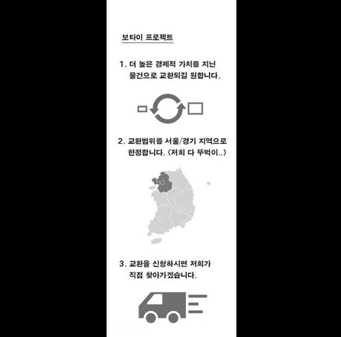 보타이 프로젝트는 물물 교환을 통해 나눔을 실천하는 프로젝트입니다.