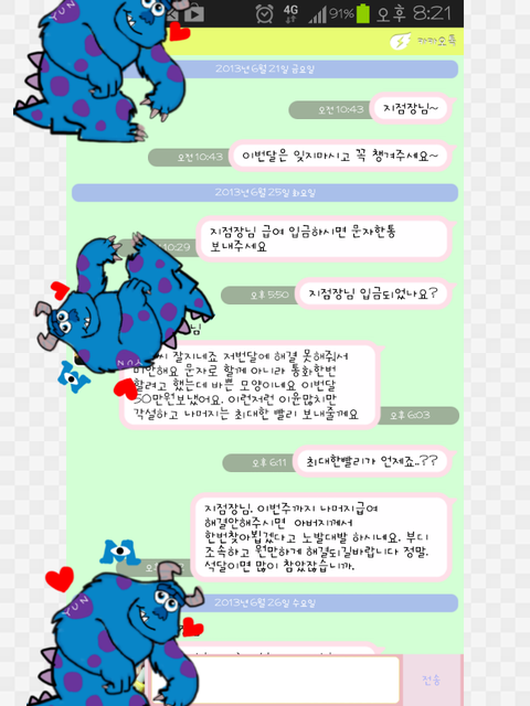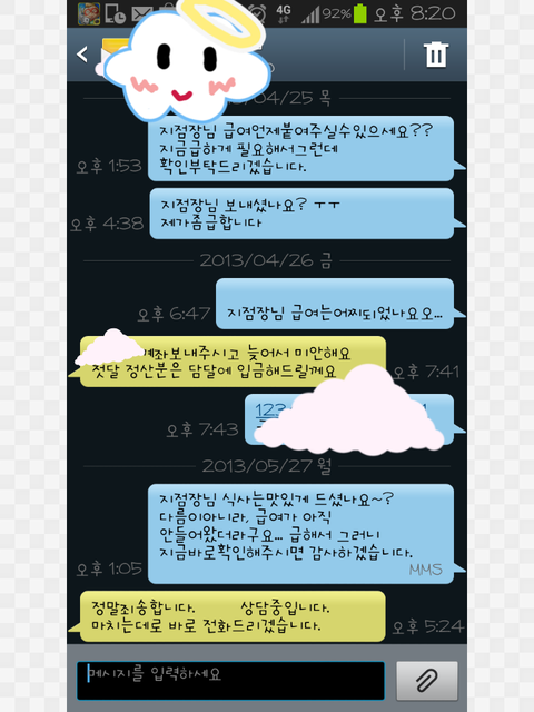 그뒤에 내용은 글로쓰기엔 너무길것같고 읽으시기 귀찮으실테니 그냥 문자내용이랑 카톡내용 캡쳐한거 띄울께요.