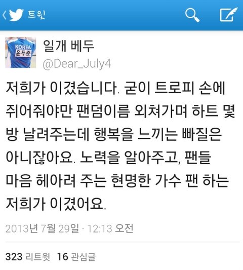 저희가 이겼습니다.투표도 정신도.투표 하나졌다고 아무것도 모르면서 없는 말 지어내고 남의 가수 비난하는게 행복을 느끼는 빠질은 아니잖아요?저희가 하는 것 하나하나 걱정해주고 피해만 줘도 좋아해주는 가수 팬하는 저희가 이긴겁니다