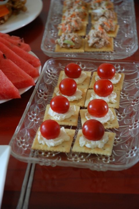 그때만든 카나페! 그냥 크림치즈에 방울토마토만 얹었는데 궁합 짱!!