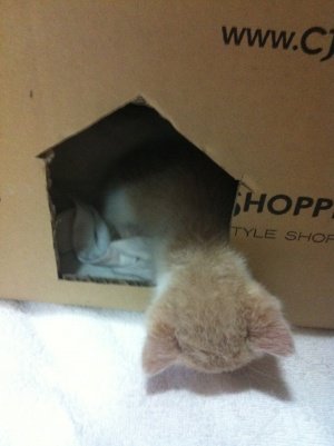 코딱지만한게 자꾸 상자 위로 뛰어올라가려고 하다가 뒤로 자빠져 머리를 쿵 쿵 하고 박아서;;