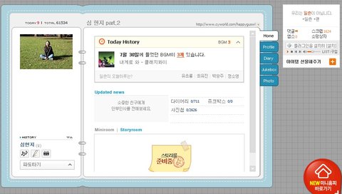 이렇게 위에 써져있는 것과는 다른 이름의 미니홈피가 떳습니다.