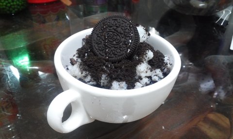 오레오 빙수. 우유 얼려서 오레오 부셔 넣은것 연유랑 꿀이랑 바닐라아스크림 넣으면 더 맛있음 우유 어는데 오래걸림
