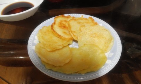 감자전. 감자 갈아서 부침가루 넣고 섞어서 부침.