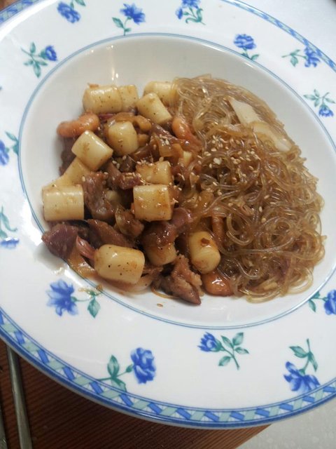 이름은 정말 길지만.. 그냥 고기랑 냉동새우, 떡이 남았길래 간장양념해서 볶듯이 조리다가 당면넣고 어우러지도록 다시 섞어서 낸건데요, 이거 정말 맛있었어요! 가끔씩 요리하다보면 재료가 어정쩡하게 남을때 있잖아요. 그럴때 이렇게 떡과 함께 양념해서 볶아드셔보세요~