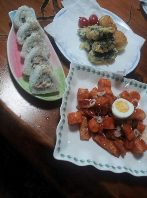 정말 예전에 만든거네요! 보시다시피 떡볶이는 너무 건조해서 감흥 없었고요, 저 롤같은 누드김밥! 배합초로 양념하면 저렇게 자칫 느끼할 수 있는 식탁에서 정말 좋아요. 저때 김말이를 처음 만들어봤는데 정말 맛있었어요..
